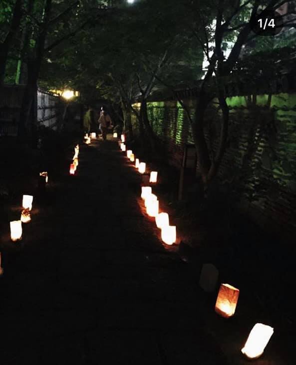 竹で作られた灯籠が足元を