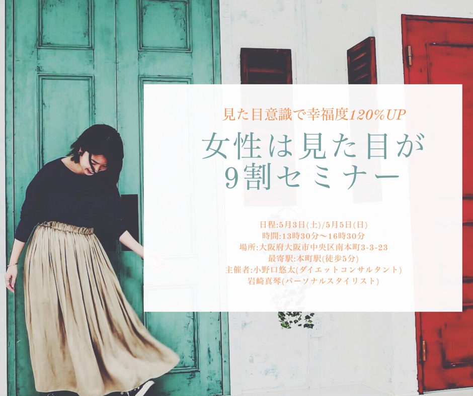 5/3(金)、5/5(日)本町駅にて大阪DA小野口が セミナーを開催します。「女性は見た目が9割セミナー」